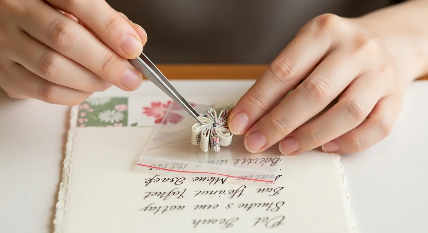 このまま最低24時間、じっくりと時間を置きます。すると、揮発した香りの分子が手紙の繊維に均一に吸着し、シミを作ることなく、開けた瞬間にふわりと香る、理想的な「香りの手紙」が完成します。