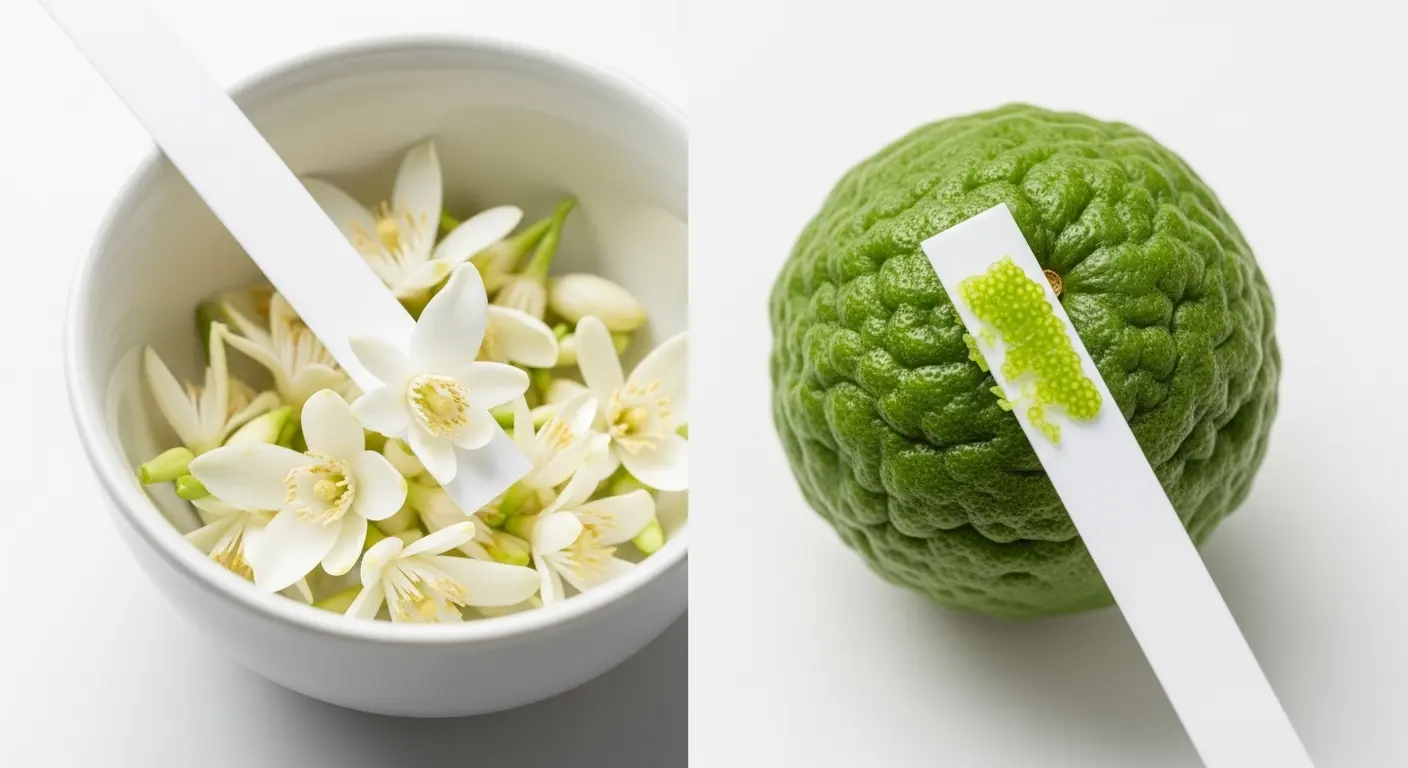 まず、あなたの鼻が何を感じるか、その「第一印象」から解き明かしていきましょう。ネロリとベルガモットは、どちらも「シトラス」のグループに分類されますが、その香りのプロファイル(Odor profile)は全く異なります。