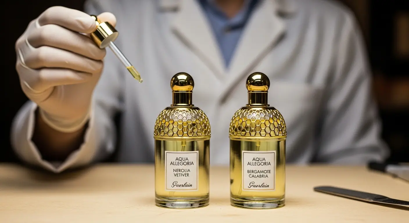 私たちは今、ゲランという1828年創業の伝説的なメゾン(香水一家)から、奇しくも同じ「アクア アレゴリア」ラインに属し、同じ調香師チーム(ティエリー・ワッサーとデルフィーヌ・ジェルク)によって創られた、「ネロリア ベチバー」と「ベルガモット カラブリア」という二つの作品に出会いました。これ以上の「A/Bテスト」は存在しません。