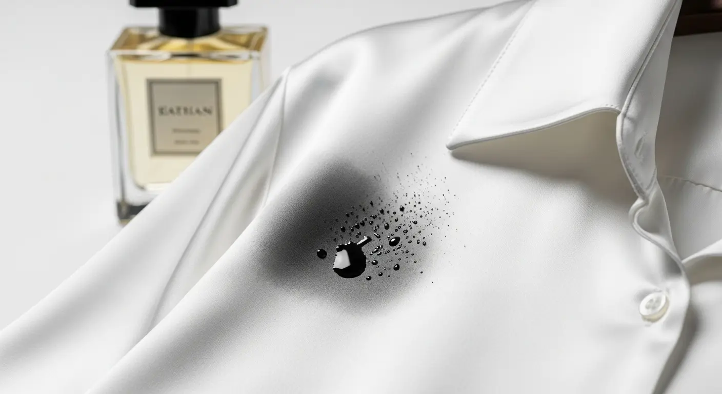 香水に含まれる香料(油分)やアルコールが、特に白い服やシルク、デリケートな素材にシミを作ってしまう可能性があります。一度ついたシミは、クリーニングでも落ちないことがあるため、細心の注意が必要です。 - 香りが変化しない