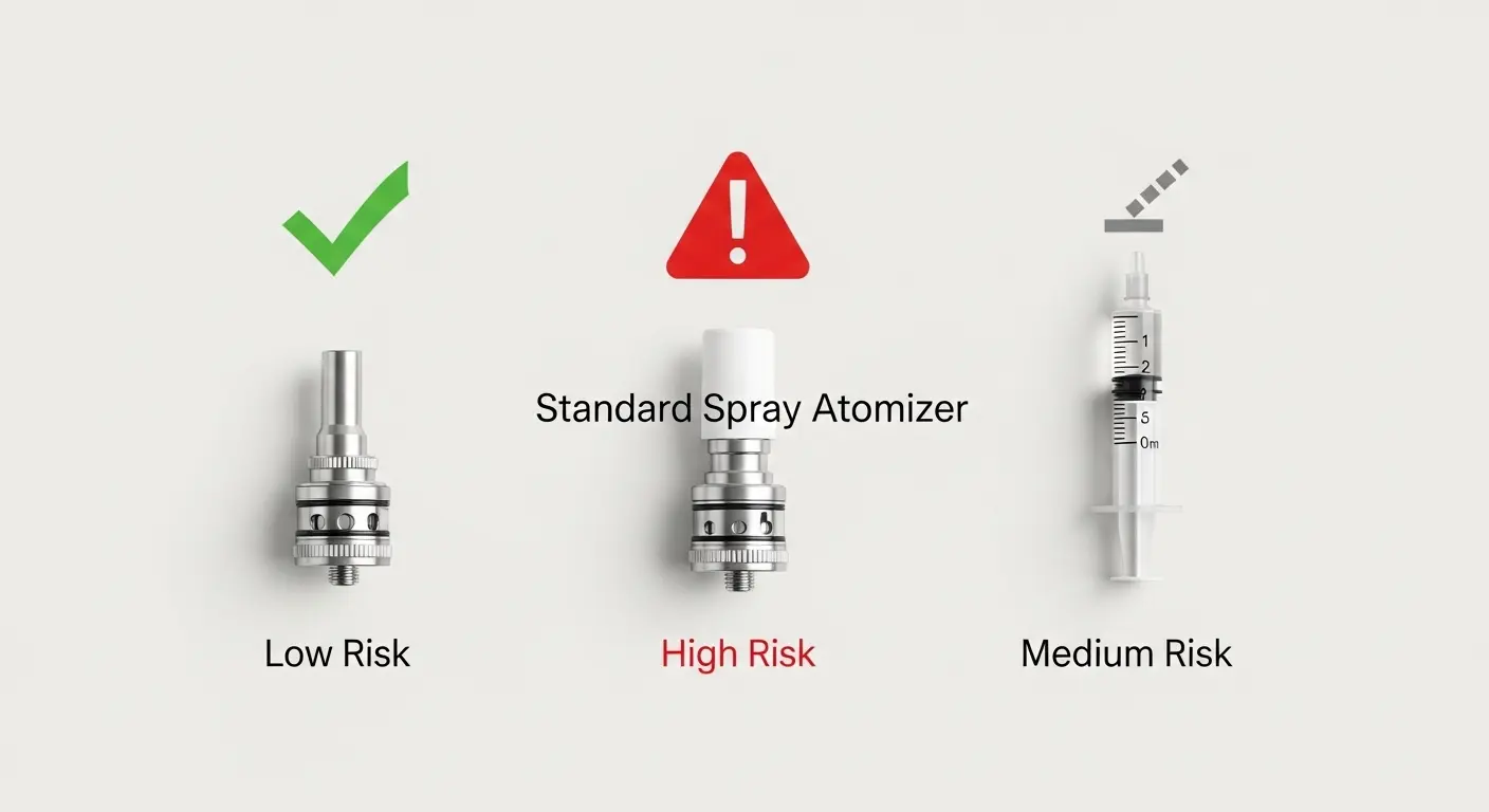 このように、手軽さで人気の「底面充填タイプ」は、化学的な観点からも最も酸化リスクが低い、優れた方法と言えます。スポイトやシリンジは本体ボトルのスプレー機構を壊すリスクがあり、一般の方には推奨されません。
