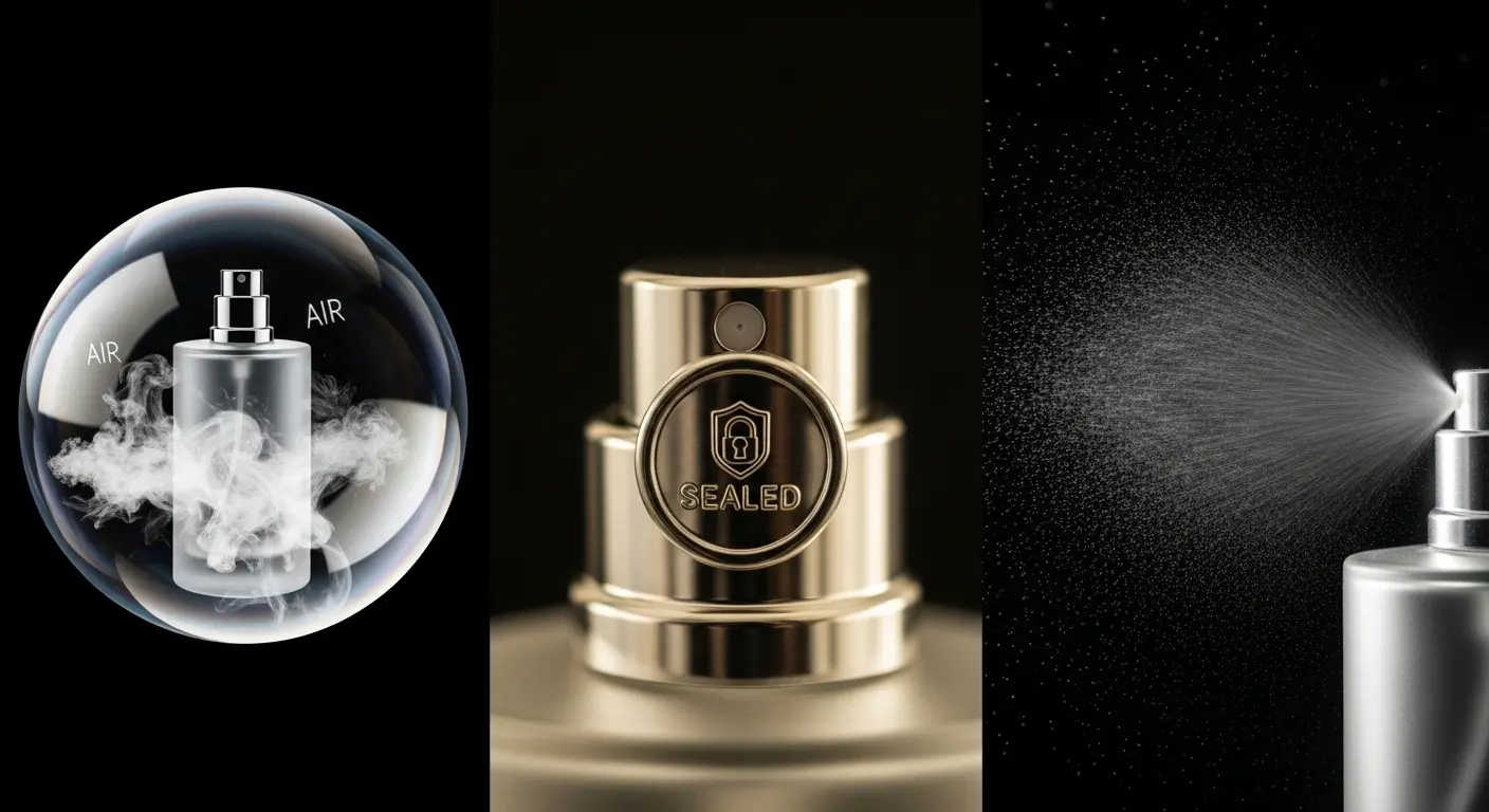 では、なぜブランドはあえて「開けられない」仕様を選ぶのでしょうか。それは、クリンプ密封が香水の「機能的価値」を維持するために不可欠な、3つの重要な役割を担っているからです。