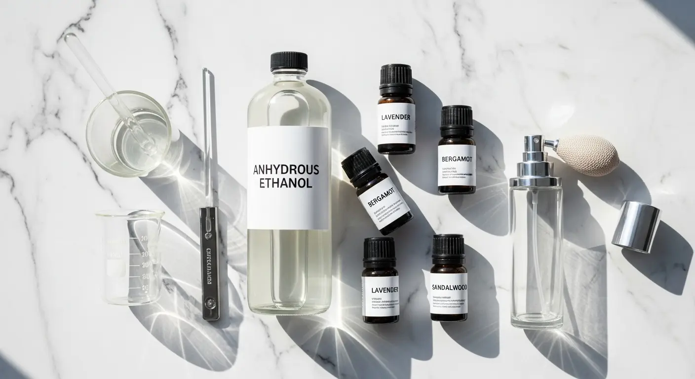 • 無水エタノール: 香料を溶かすためのアルコールです。消毒用エタノールは水分や添加物が含まれているため適しません。必ず純度の高い無水エタノールを使用してください。