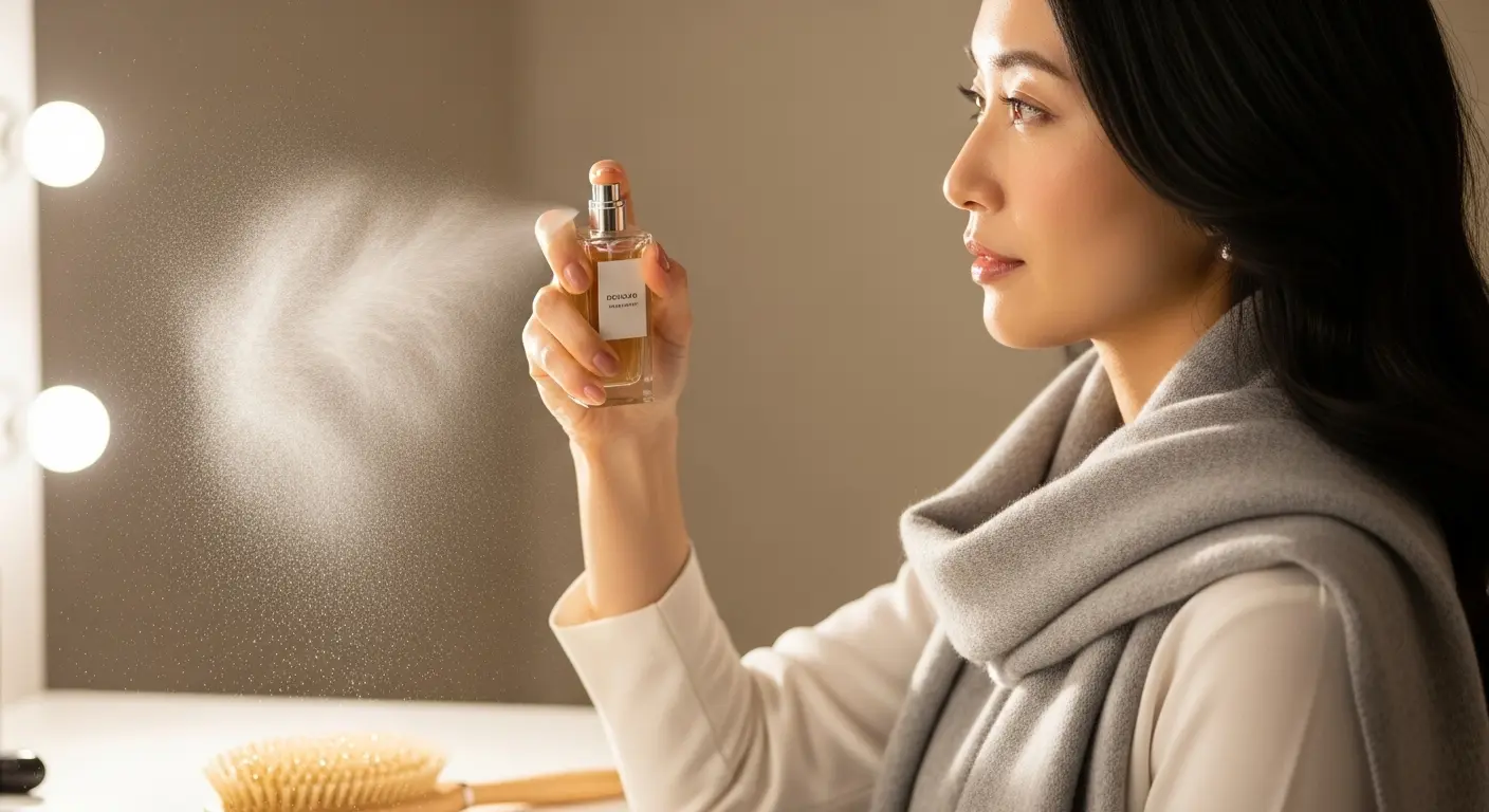 しかし、香水に含まれるアルコールは髪を乾燥させる可能性があります。最も洗練された方法は、アルコールフリーの「フレグランス・ヘアミスト」を別途使用することです。もし香水本体を使いたい場合は、直接髪への接触を避け、衣類やスカーフ、または空間にスプレーしてその霧をくぐることが推奨されます。ヘアブラシへのスプレーは、ブラシを通じてアルコール成分が髪に接触する可能性があるため、あまり推奨されません。