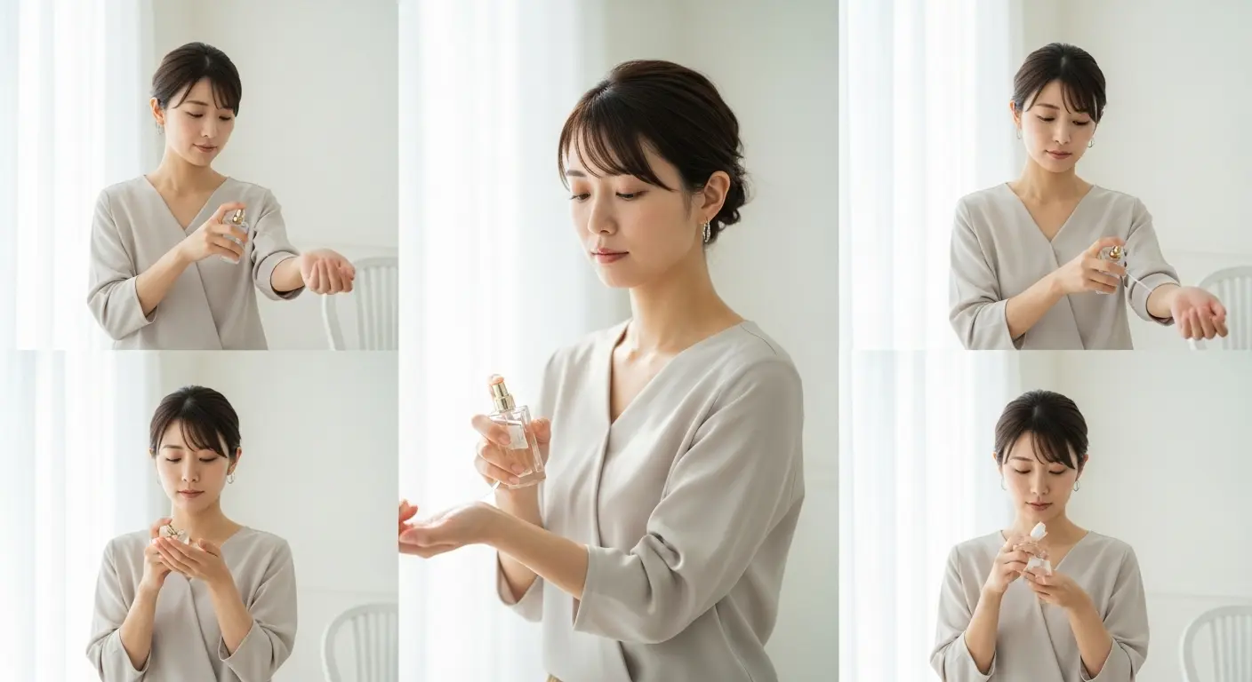 肌トラブルを未然に防ぐには、ご使用前のパッチテストが非常に重要です。手首の内側や肘の内側など皮膚の薄い部分に少量の香水を塗布し、24~48時間、赤みやかゆみ、刺激がないか慎重に観察しましょう。