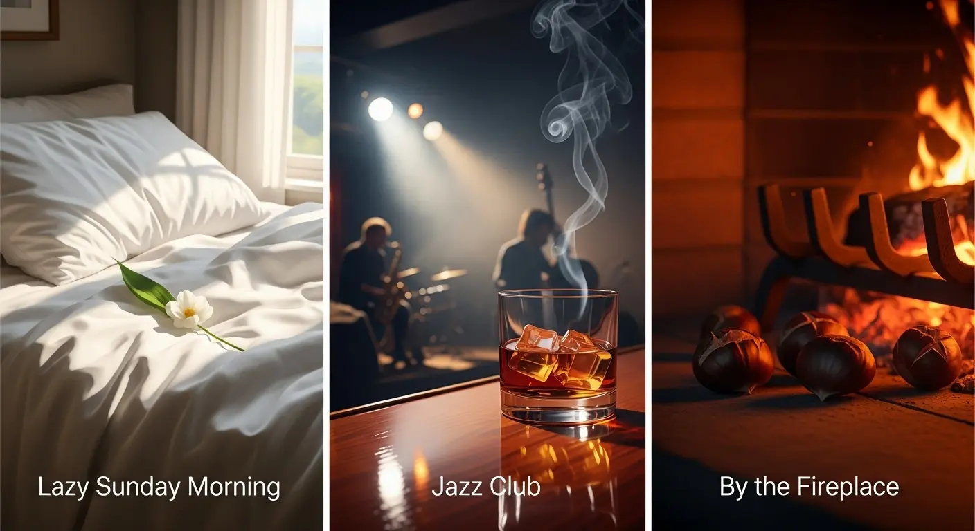 「ブルックリンのジャズクラブ。カクテルとシガーの残り香が漂う、親密な空間」という記憶の再現です。