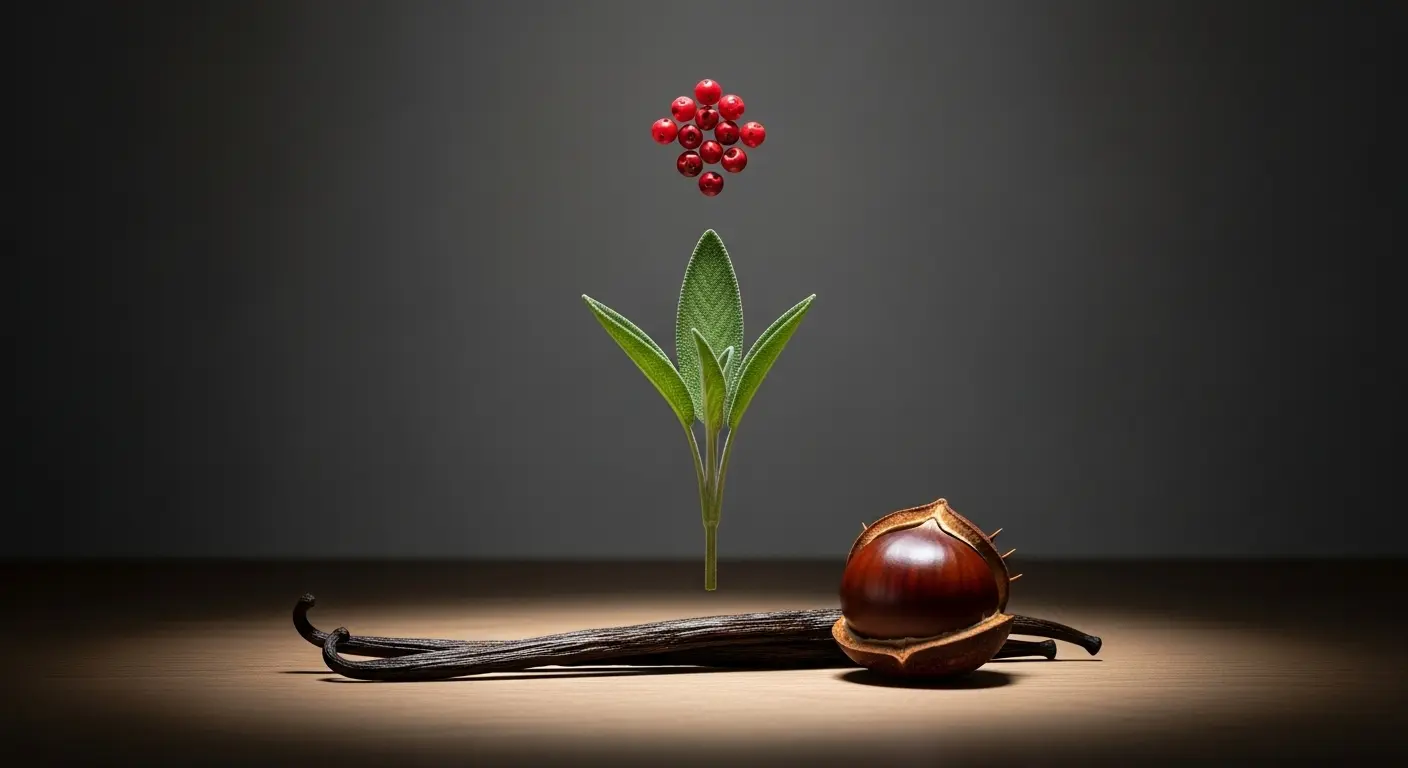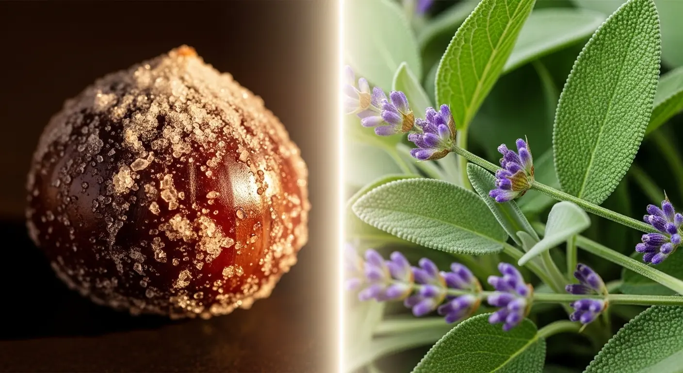 すぐにミドルノート(主題となる香り)であるセージが花開きます。ここで伝統的な「フゼア」の側面が顔を出し、アロマティックなハーブの香りが、このフレグランスに清潔感と知的な印象を与えます。このセージの清涼感が、後に続く濃厚な甘さを絶妙にコントロールする、重要な役割を担っているのです。