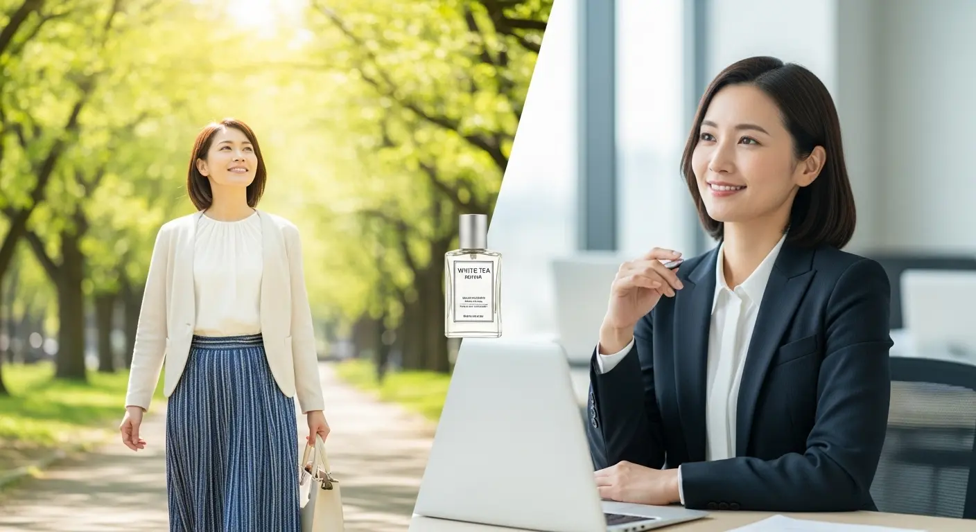 ホワイトティーの香水は、TPOを選ばず、あなたのどんな瞬間をも美しく彩る、心強いパートナーとなってくれるのです。
